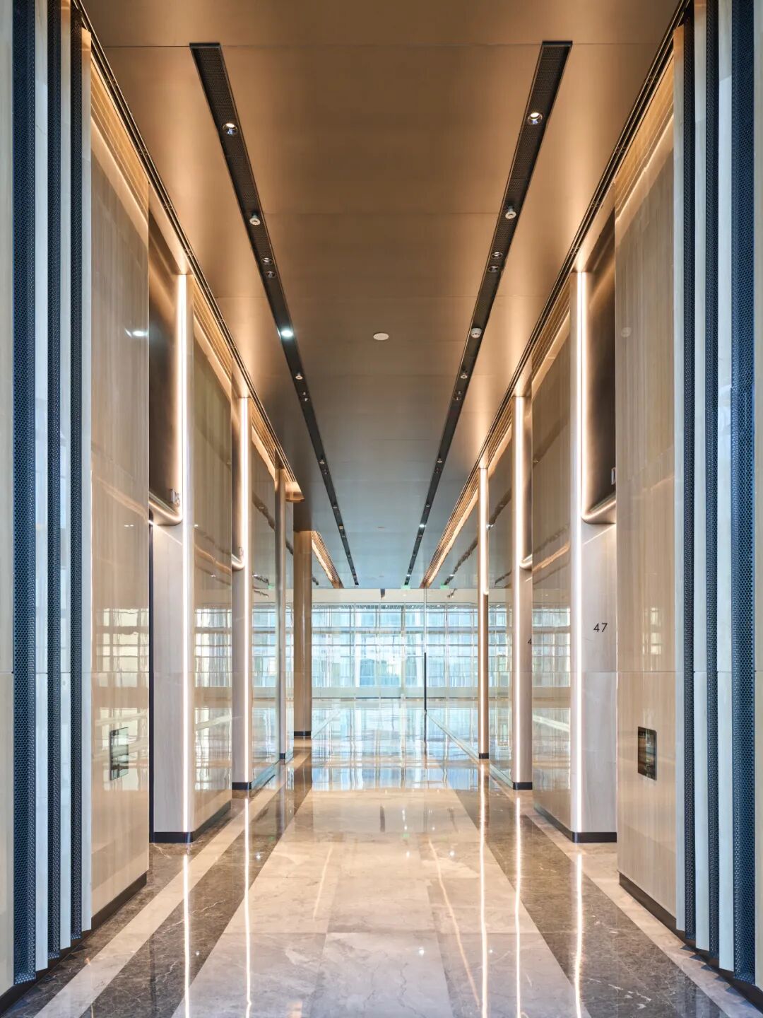 把柄穿梭电梯与区间电梯运能模拟摒弃,奥雅纳对空中大堂和电梯分区位置进行了智能布局优化。比如,将建筑垂直离别为低、中、高多个区域,并为每个区域配备专属的电梯组。配合空中大堂设想,一样乘客乘坐高速穿梭电梯直达转机层,再换乘区间电梯,已毕高效分流。该设想灵验缩小了电梯行程,减少电梯数目与开动时候,从而权臣普及运能着力与反应速率。