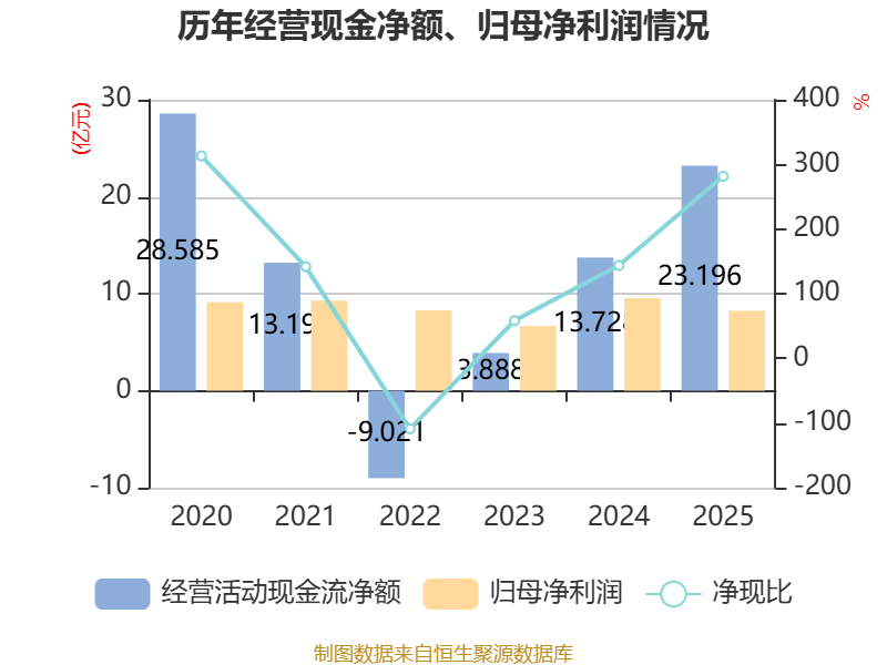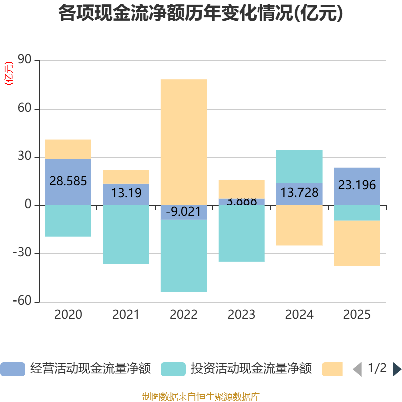 鸿沟2025年,公司贪图作为现款流净额为23.2亿元,同比增长68.97%;筹资作为现款流净额-28.22亿元,同比减少3.07亿元;投资作为现款流净额-9.61亿元,上年同时为20.35亿元。